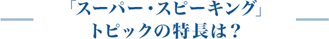 「スーパー・スピーキング」では、一般的な英会話をあつかう6トピックと、 ビジネス・スピーキング(プレゼンテーション、電話応対、ビジネスランチでの会話、会議、取引交渉、パーティー)をあつかう12トピックの合計18トピックで構成されています。